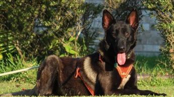She is a green dog in explosives detection and a certified service dog.